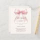 A soft ivory colored background, decorated with a pink bow with pearls. Personalize and add a name and party details.