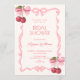 Pink bow ribbon cherry bridal shower inbjudningar