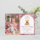 Pink Bow Teddy Bear Tartan Photo Birthday Inbjudningar