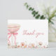 Blush pink bridal shower thank you card featuring soft wildflowers and a delicate pink bow design. Created to express gratitude with a romantic, floral look that feels elegant and heartfelt. Ideal for bridal shower thank you notes, wedding shower appreciation cards, and post celebration messages. Editable text. Clean print-ready layout.