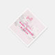 Design features a light pink background to the image of a pink bow amid white puffy clouds. Name of guest-of-honor is displayed in an elegant pink font above the event and date, which are featured in bold pink. Designed to coordinate with the "Pink Bows Girl Baby Shower" collection.