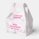 Design features a light pink background to the image of a pink bow amid white puffy clouds. Name of guest-of-honor is displayed on front in an elegant pink font above the event and date, which are featured in bold pink. Message of gratitude is featured above. Design features room for both shower date and due date. All text is customizable.