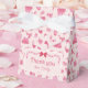 Give your Christmas baby shower favors packaged in these adorable Merry Little Baby Shower-themed favor boxes with a pretty bow, and printed blush pink with a Christmas-themed baby shower pattern of coquettish Christmas trees, Santa hats, gifts, baby bodysuits, bibs, mittens, and more and shades of pink. The coquetteish favor box is perfect for a baby girl Christmas baby shower.