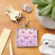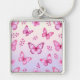 Pink butterflies and flowers pattern fyrkantig silverfärgad nyckelring