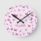 Pink Butterflies Pattern Custom Name Rund Klocka