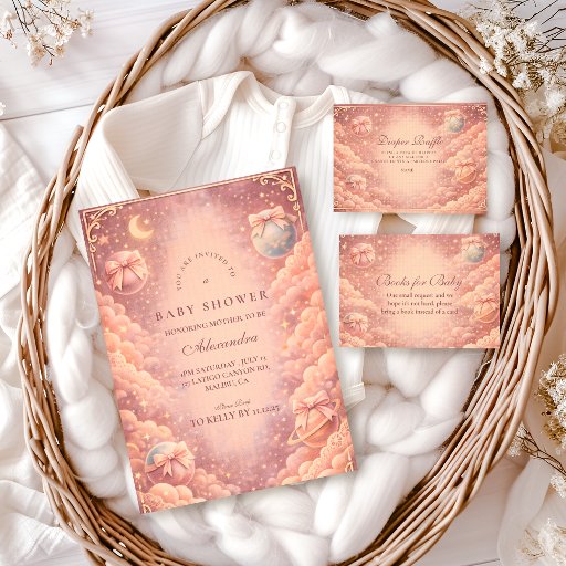 Pink Celestial Bows Clouds Baby Shower Inbjudningar