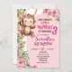 Pink Cheeky Little Monkey Savannah Theme Birthday Inbjudningar
