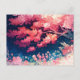 Pink Cherry Blossom Tree at Night Starry Sky Vykort