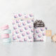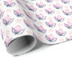 Luxurious matte wrapping paper featuring a festive pastel coquette pattern with glossy pink holly berries, purple holly leaves, teal rings, golden dots and soft pink stars on white. Perfect for Christmas gifts, winter birthdays, baby showers or adding kawaii charm to any present.