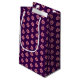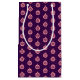 Merry pink ornament Christmas ornaments imprinted with purple snowflakes and pink dots cover this bright purple bag in a modern holiday pattern.