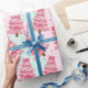 Girly holiday pattern featuring pink Christmas trees decorated with bows.