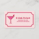 Pink Cocktail Retro Font Wedding Drink Ticket Rabattkort