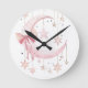 The Pink Coquette Round Clock is a charming addition to any nursery, bringing a touch of whimsy and delight to your little one's room. This adorable clock features a cute pink coquette, gracefully poised against a backdrop of a soft pink moon sprinkled with twinkling stars. Its gentle color palette and enchanting design create a serene and magical atmosphere, perfect for a nursery setting. Not only is it an endearing decorative piece, but it also serves as a functional timekeeper, making it both beautiful and practical for her cozy space.