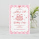 With its trending coquette aesthetic, pink stripes, vintage cake illustration, and hand drawn charm, this invitation is the perfect way to invite guests to a birthday party that feels playful, feminine, and unforgettable.