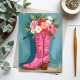 Pink Cowgirl Boot Flower Bouquet Watercolor Postcard