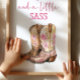 Add a touch of western charm to your space with our Pink Cowgirl Print, featuring cowgirl boots and quote "Boots, Class and a Little Sass". Perfect for country themed decor, this stylish artwork makes a lovely addition to a nursery, teen room, or any cowgirl inspired space!