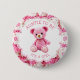 Pink and white crocheted teddy bear girl's baby shower Auntie to be button. . An adorable pink teddy bear crocheted with pink and white yarn adds the sweetest touch. Get one for all the important family members at the baby shower.