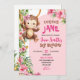 Pink Curious Monkey Safari Theme Birthday Inbjudningar