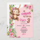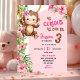 Pink Curious Monkey Savannah Theme Birthday Inbjudningar