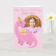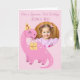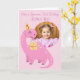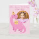 Celebrate a dino-mite little girl turning Three with this adorable pink dinosaur birthday card! Featuring a friendly dino in party mode—complete with a party hat, gift, and a sweet smile—this design is perfect for toddlers who love animals and adventure. The soft pink background and whimsical details add charm and warmth, while editable text lets you personalize the card with her name or a special message. A delightful way to mark a big milestone with prehistoric cuteness!