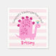 Add some extra style to your kindergarten girl’s celebration with these personalized paper napkins! A fun, whimsical, playful visual of a cute, bold, kawaii, pink brontosaurus, and fun, handwritten typography over a light pink and white striped circle background, honors the kindergarten grad. Add love and joy to your party whenever you use this simple, modern, and whimsical, personalized paper napkin. Personalize the custom text with your graduate’s name and special message. Your choice of 3 sizes: cocktail, luncheon or dinner. Matching invites, banners, welcome foam boards and other graduation goodies are also available in this special and fun collection. This charming paper napkin is guaranteed to set just the right tone at their special party!