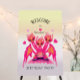 Cute little pink dragon with three heads and pink hearts around for kids birthday party