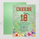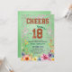A modern design featuring a dark gold glitter number 18 with pink and emerald glitter and colorful flowers on the bottom. Customize the details for a chic Birthday Celebration.