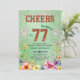 A modern design featuring a dark gold glitter number 77 with pink and emerald glitter and colorful flowers on the bottom. Customize the details for a chic Birthday Celebration.