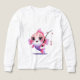 A fun long sleeve tee for kids with a pink fish holding a floral fishing rod. Great for sea lovers and outdoor fun.
