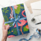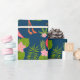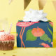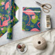 Pink flamingo ornament on a striped turquoise back presentpapper