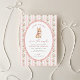 Celebrate your little bunny with this sweet baby shower invitation featuring soft pink stripes, vintage roses, and an adorable watercolor bunny illustration.