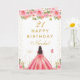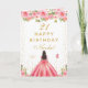 This elegant and glamorous birthday card can be personalized with a name or title such as daughter, granddaughter, niece, friend etc. The design features a beautiful princess with dark hair and dark skin in a pink ball gown. The text combines handwritten script and modern sans serif fonts for a classy and sophisticated look. The floral arrangements, butterflies and gold confetti create the perfect blend of rustic and chic.