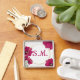 Pink Floral Gold Circle Keychain Fyrkantig Silverfärgad Nyckelring
