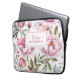 Pink Floral laptop sleeve with pretty pink florals and name personalization in script. Beautiful blush pink floral botancials design. Pretty, elegant, laptop sleeve case case for her.