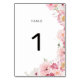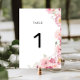 Pink Floral Wedding Table Number Bordsnummer