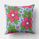 Pink Florals with Bold Petals and Green Leaves Kudde