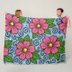 Pink Florals with Green Leaves and Curved Details Fleecefilt