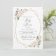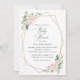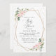 Invite friends and family in style and set the tone for your special day with this charming baby shower invitation. Design features pink and white watercolor flowers, greenery, gold confetti and gold frame on white background.