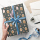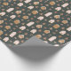 Whimsical Christmas theme wrapping paper featuring illustration of gingerbread houses with pink accent.
