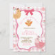 Pink Gingham Plaid Chick 1st Birthday Invitation, Pink Quirky One Cute Chic Birthday Invitation, Pink Coquette Bow Birthday Invite, Editable Preppy Little Chicken First Birthday