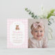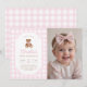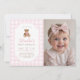 Pink Gingham Teddy Bear Beary First Birthday Photo Inbjudningar