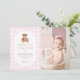 Pink Gingham Teddy Bear Beary First Birthday Photo Thank You Card