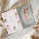 Pink Girls Bow Tutu Ballerina Birthday Photo Thank You Card