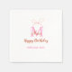 Pink glitter bow add name letter monogram birthday pappersservett