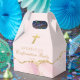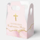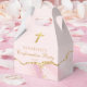 Elegant pink and gold agate decorate these pretty personalized confirmation party favor boxes for a girl's Christian ceremony celebration. Customize with a name under the beautiful cross for a chic religious party favor box.