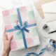 This pink and light green watercolor pattern originated back in the '50s. It is a light and airy pastel gingham style retro piece with white squares too. It is a nice choice of a roll for your Christmas gift packaging wrapping paper. Especially if you like subtle designs or enjoy it as a background for bright, festive bows or ornaments.