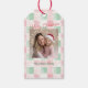 Pink Green Retro Pattern Photo Christmas Presentetikett