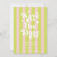 Retro Typography Wedding Save The Date Invitation. With a modern retro typography "save the date" in a striped soft pink and green color on the front with names and date, website or your own text in a simple and minimal design. A full-frame photo on the back of the wedding announcement. A unique Wedding Save the Date for couples looking for a fun and trendy look. Choose prints and/or a digital announcement download.