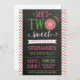 Cute "She's Two Sweet" watermelon party birthday invitation for your baby girl's 2nd birthday!