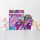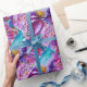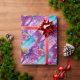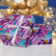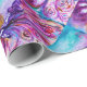 Levande, färgrik blomsterfaery, blomsterliga virvlar och en magisk fjärilsväxt, samtida akvarellmålning i lila, violett, rosa, fuchsia, blågröna iriserande färger med guld- och silverfolie av Bulgan Lumini (c)